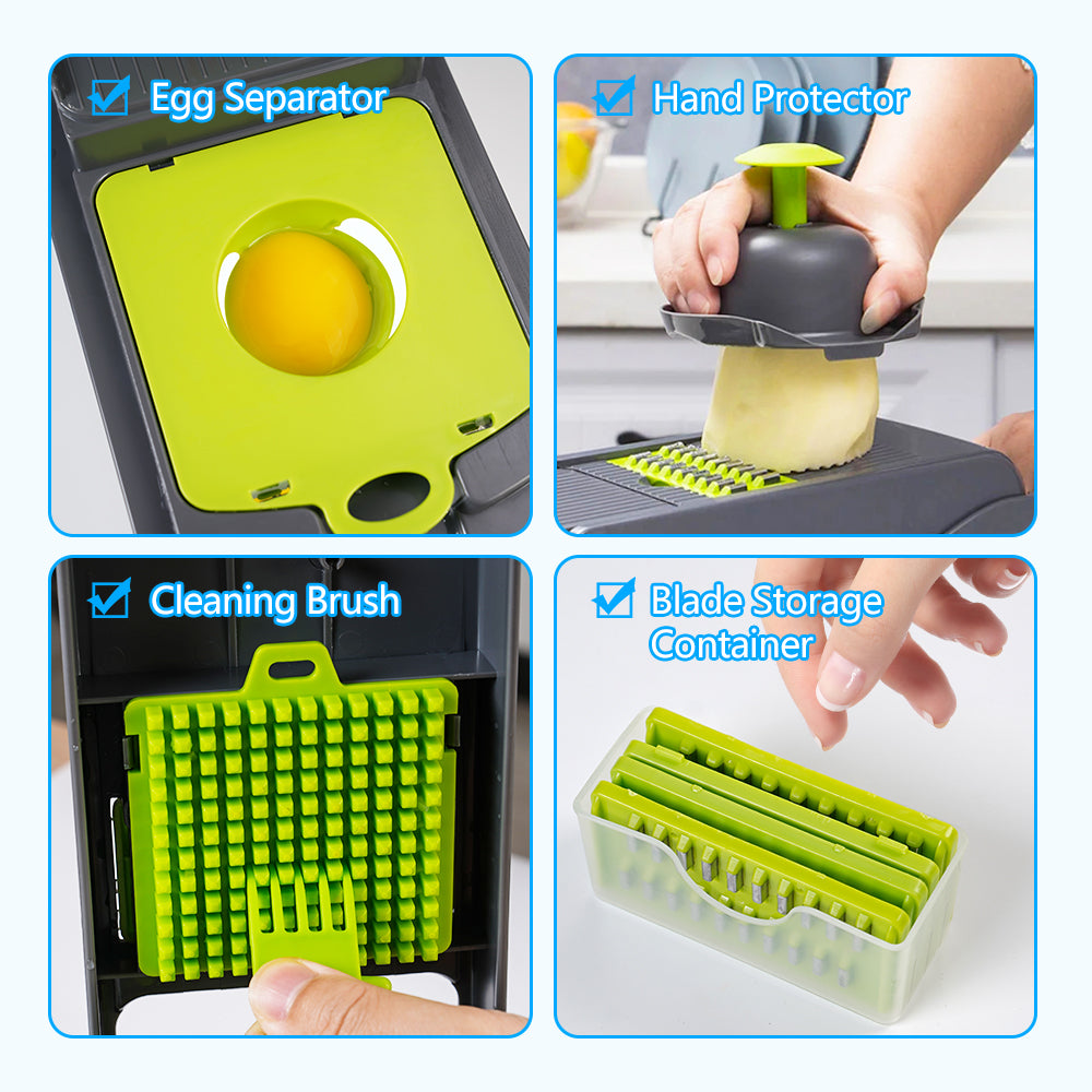 Multifunctional - It can cut various vegetables, fruits or cheeses such as onions, tomatoes, potatoes, radishes, etc.